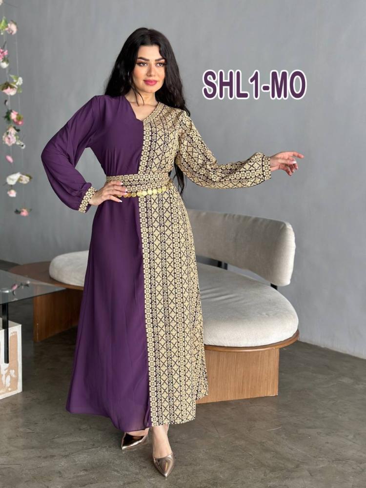 فستان ملكي شيفون تطريز فلسطيني مع حزام ليرات ذهب✨✨ ( صناعه سورية ) على الشرط خامة كرب مع شيفون مقاسات M l xl xxl