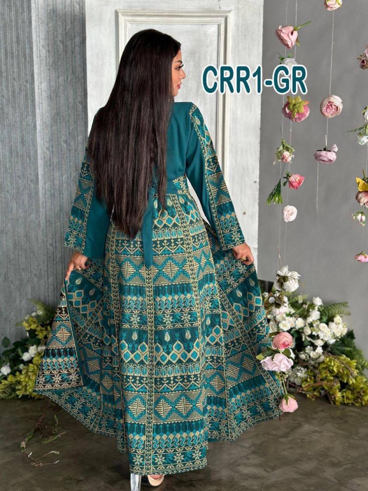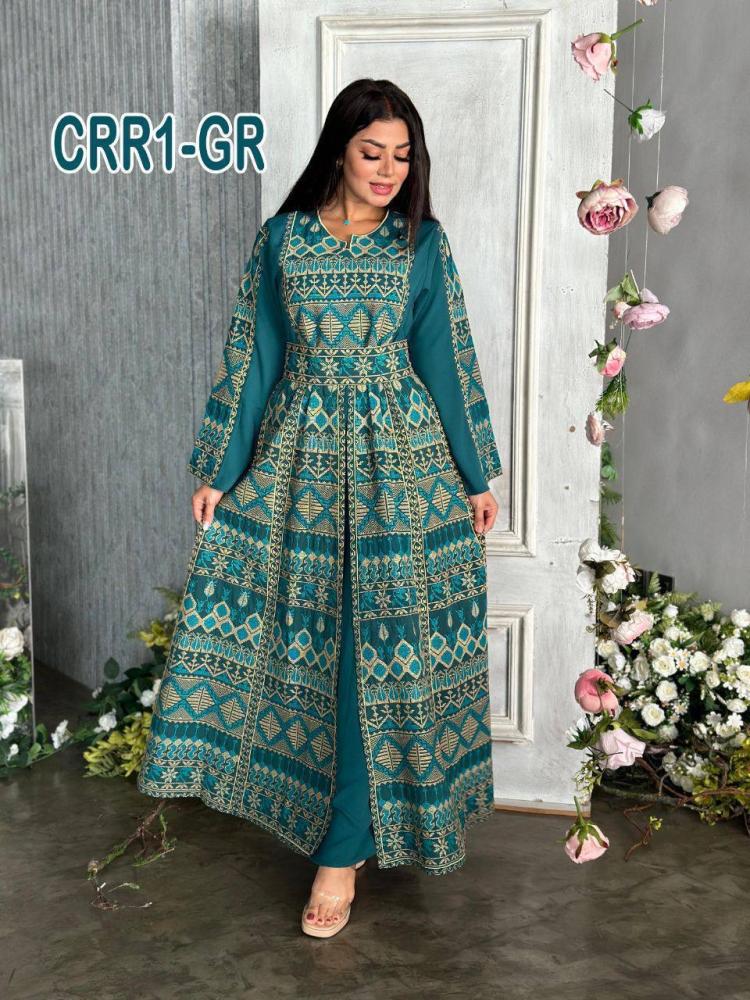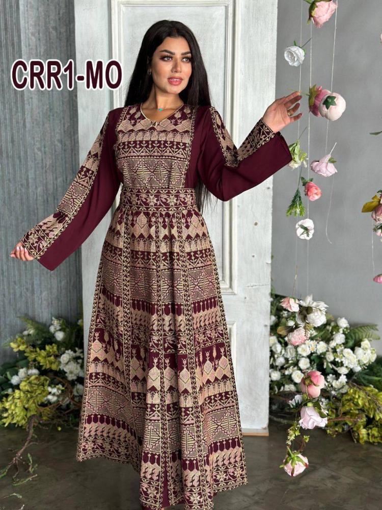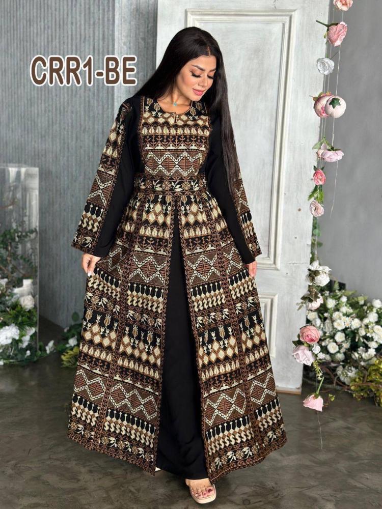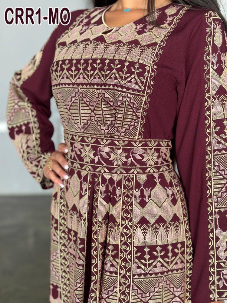 فستان ملكي كرب طبقتين رددي تطريز فلسطيني كلوش
